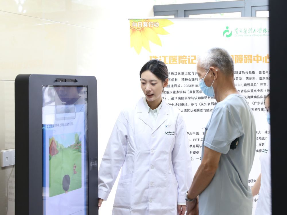 一位老年住户在大夫引导下体验南边医科大学珠江病院研发的互动式AI表示早筛诞生关连功能。新华社发